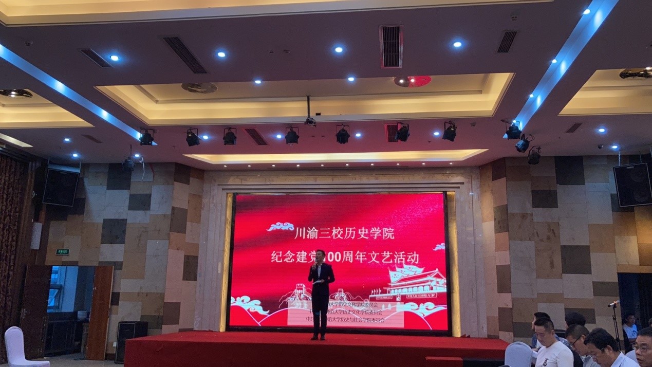 当晚,参与此次活动的三校全体党员在仪陇县忆德宾馆共同举办了纪念建党100周年文艺活动,与仪陇县文化广播电视和旅游局的部分同志联袂献出了精彩的文艺节目,共同讴歌党的领导,赞颂祖国的美好,抒发爱党爱国情怀,其间还穿插了党史知识有奖问答,最后以大合唱《没有共产党就没有新中国》将晚会推向高潮。