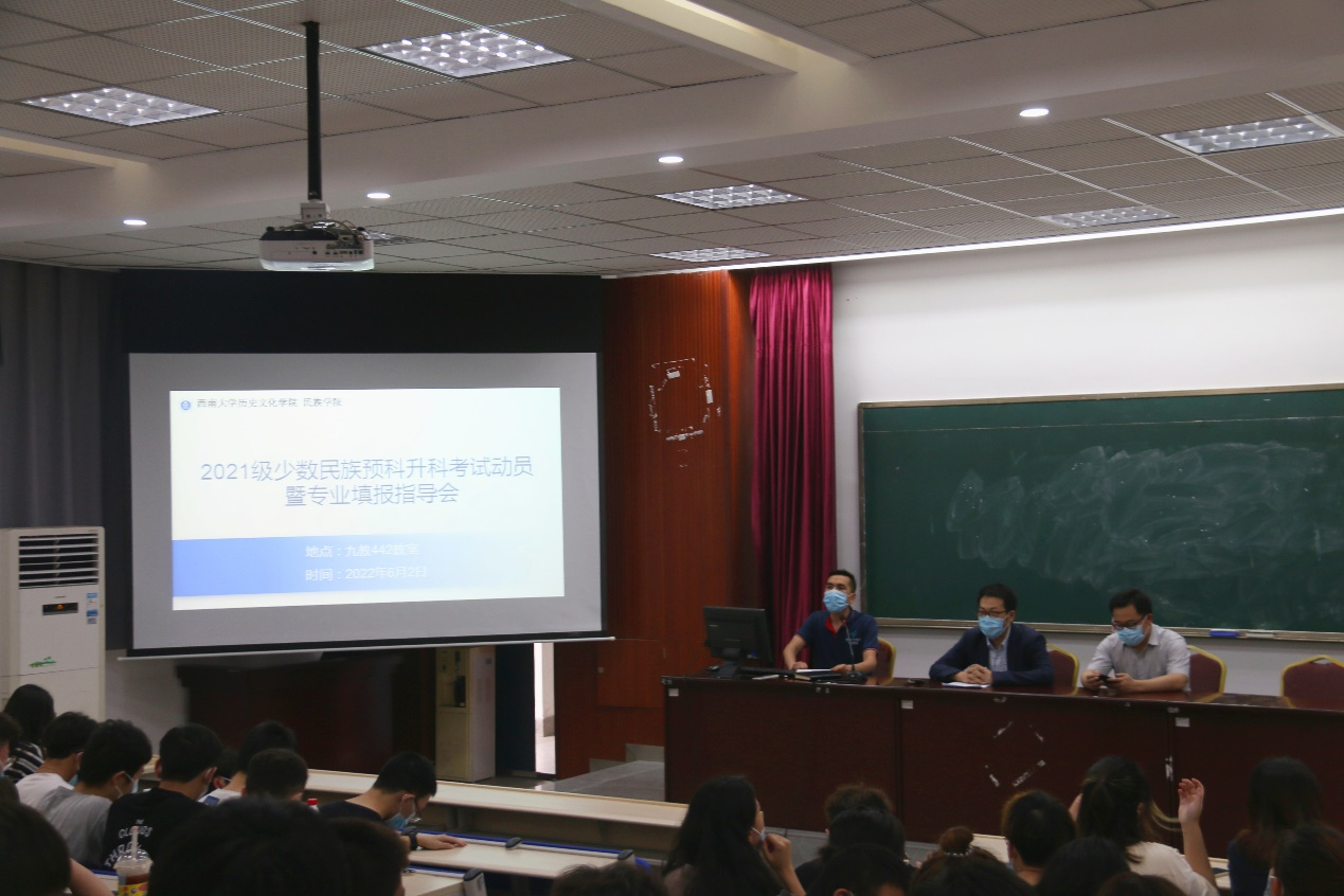 为更好的开展2021级少数民族预科升科考试和志愿填报工作,6月2日下午,公司举行2021级少数民族预科升科考试动员暨专业填报指导会。公司副经理李晶,校人才招聘处招生管理科科长陈玖豪,2021级预科辅导员亚库普•阿卜拉及全体预科同学参加会议。会议由亚库普•阿卜拉主持。