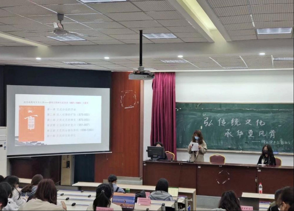 随后,各读书小组的负责人先后上台介绍了本组的阅读书目,分别有高木智见先生的《先秦社会与思想:试论中国文化的核心》、费孝通先生的《乡土中国》、冯友兰先生的《中国哲学简史》、方震华先生的《权力结构与文化认同:唐宋之际的文武关系(875-1063)》、仇鹿鸣先生的《长安与河北之间:中晚唐的政治与文化》以及高全喜先生的《理新之间——朱熹和陆九渊的理学》。参与读书会的同学一致认为,这些书目能够使人从不同角度体会中华优秀传统文化的深度和广度,领悟历史学科中蕴含的无尽智慧。