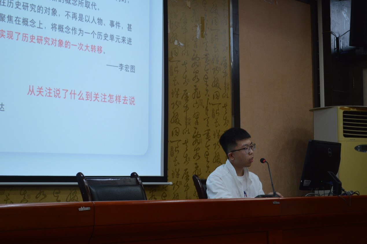 最后,张冰雨指出:概念史研究将为党史研究开拓一种新的研究路径和发展前景。同时,张学长结合个人治学经历,就同学们如何进行概念史研究提供了自己的宝贵见解。张学长的专题汇报极富学术素养,演讲生动形象,赢得了在场同学的热烈反响。
