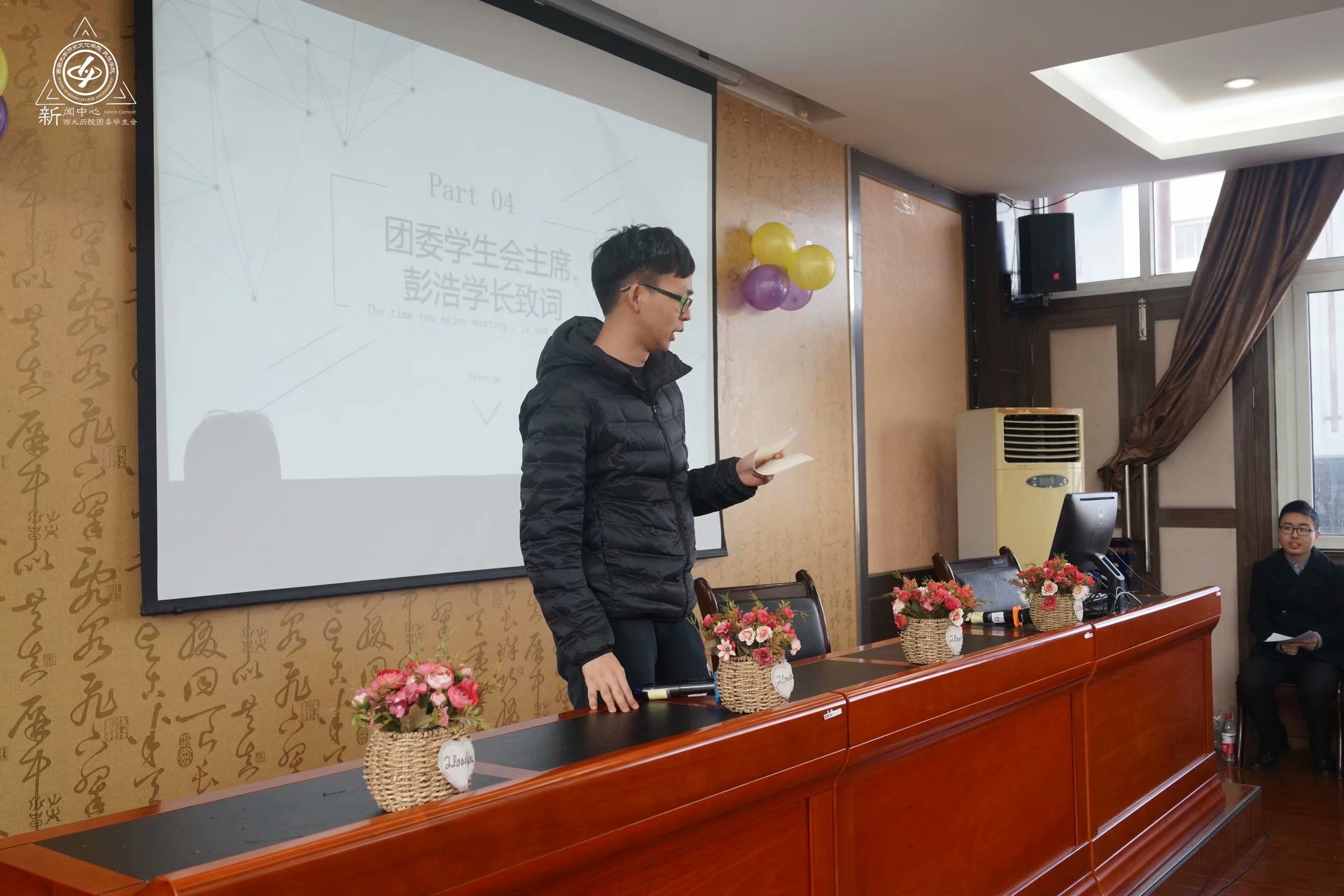 历院团委员工会主席彭浩学长出席了第三期培训大会并发表了讲话。他提出,想要掌握技能,需要自己在实际中付出更多努力。不是只有志愿者活动中才算是服务他人,在平时的工作中,也是一种服务,我们要强化“服务他人,锻炼自我”的宗旨。