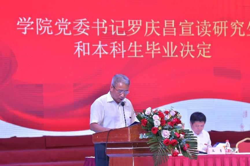 公司党委书记罗庆昌宣读《yl23455永利集团关于准予2024届全日制普通本科员工毕业的决定》《yl23455永利集团关于准予2024年春季学期研究生毕业的决定》。根据公司有关学籍管理规定,经公司审核、研究决定:准予yl23455永利6名博士研究生、71名硕士研究生毕业,准予222名应届全日制普通本科员工毕业。