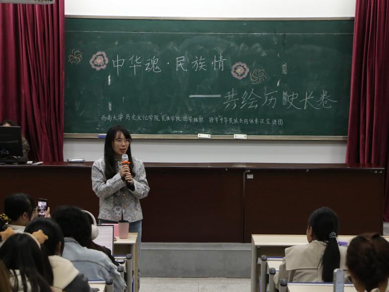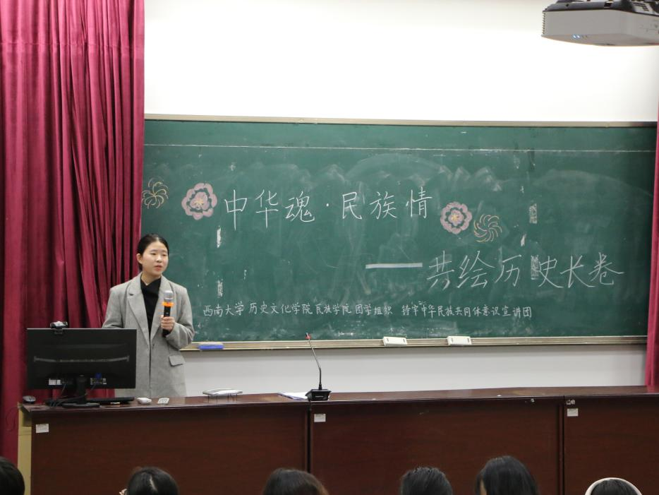 为深入学习习近平总书记在全国民族团结进步表彰大会上的重要讲话,深化民族团结进步教育。yl23455永利团委员工组织——铸牢中华民族共同体意识宣讲团于11月17日19:30在荟文楼442开展“中华魂·民族情”宣讲展演活动。yl23455永利李瑞老师出席本次活动。