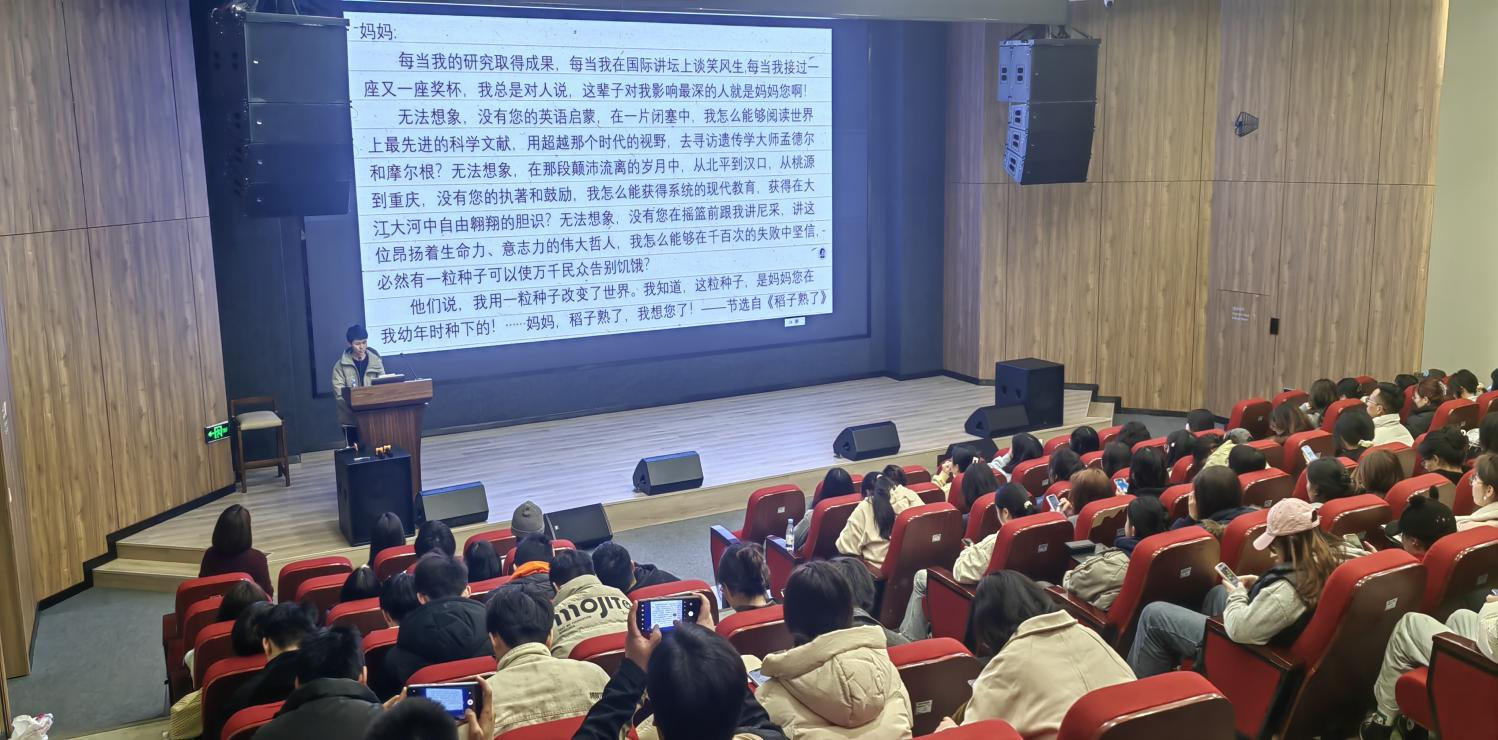 讲座中,夏老师重点讲解了袁隆平先生的科研历程,介绍了他在杂交水稻研究中的创新技术和突破,特别强调了他在解决全球粮食问题上的重要贡献。