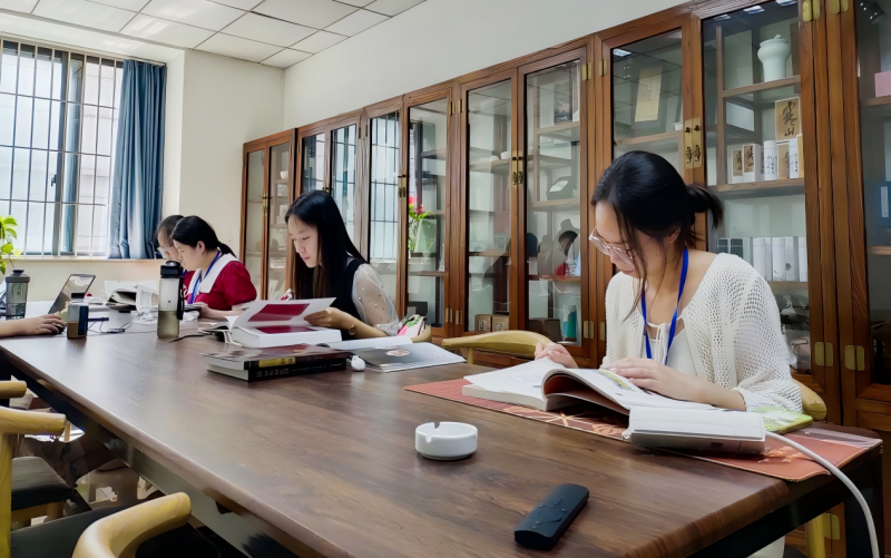 图7 文创与合作部同学们在查找文创产品资料