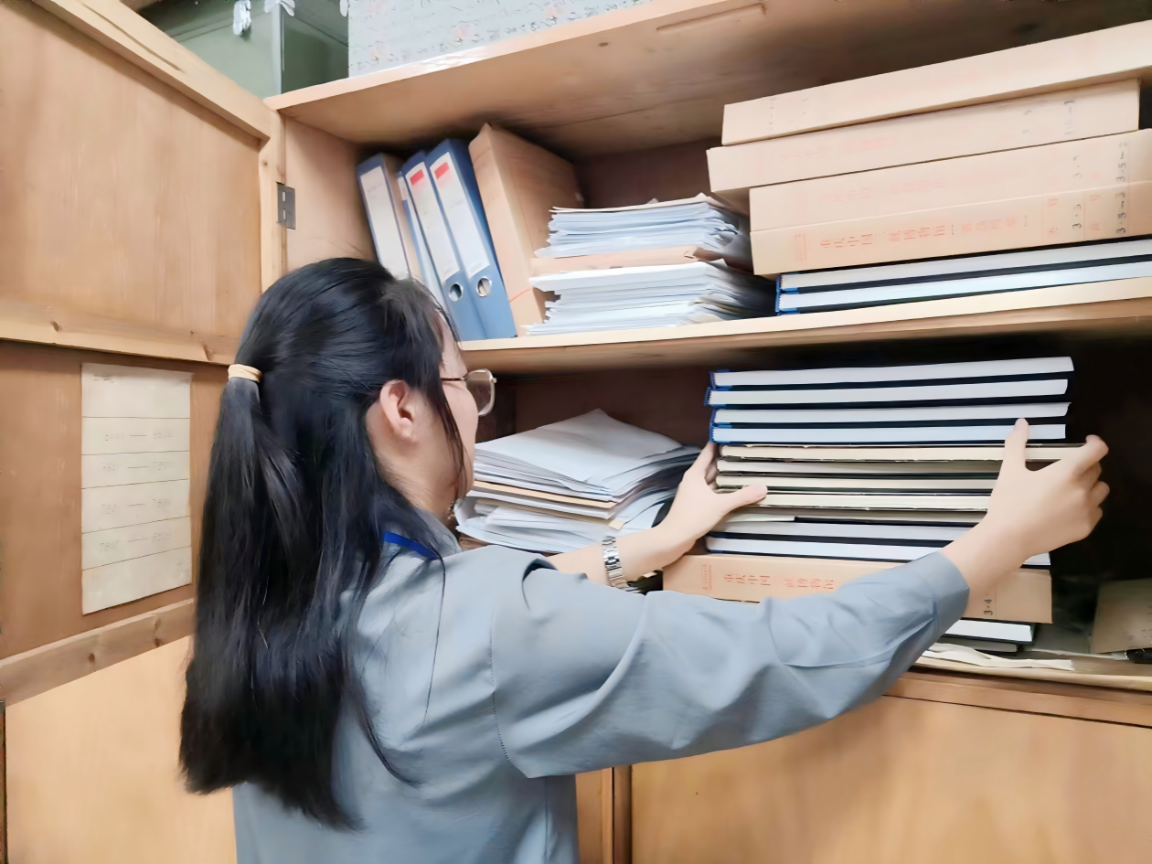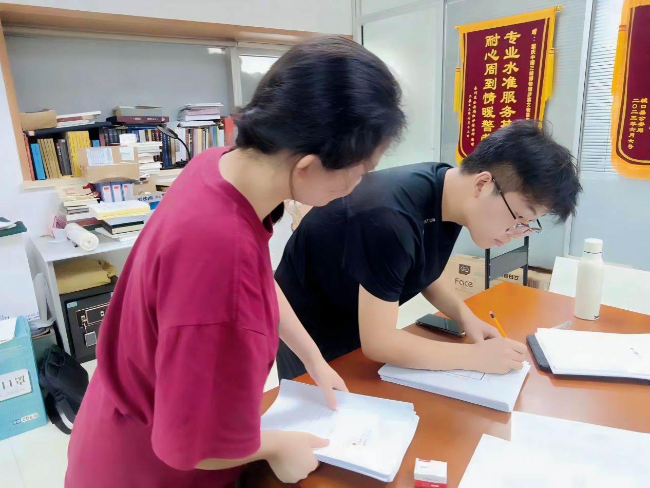 图2 李娅同学、范文宇同学在整理涉案文物档案
