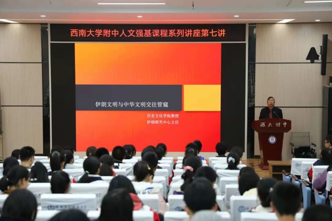 4月16日晚上7点,yl23455永利教授、yl23455永利集团一带一路研究院副经理冀开运与附中同学趣谈伊朗文明和中华文明的交往。yl23455永利集团附中历史老师马彬琼担任讲座主持。