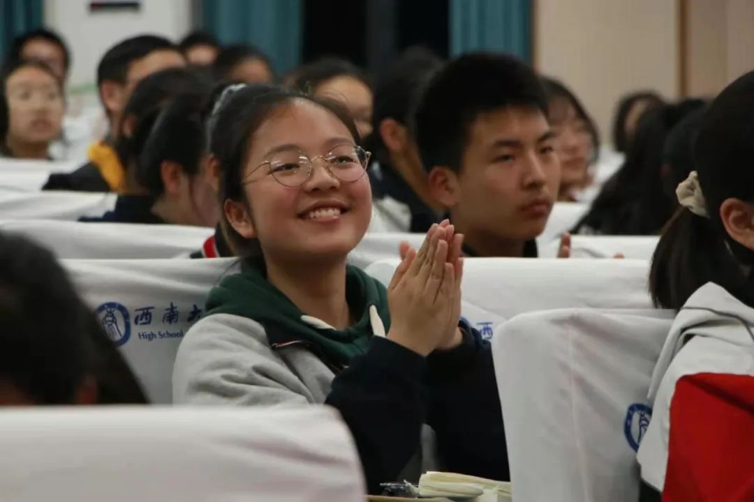 互动环节,同学们积极思考,踊跃提问交流,讲座气氛高涨,笑声、掌声不断,讲座在一片欢腾的氛围中结束。