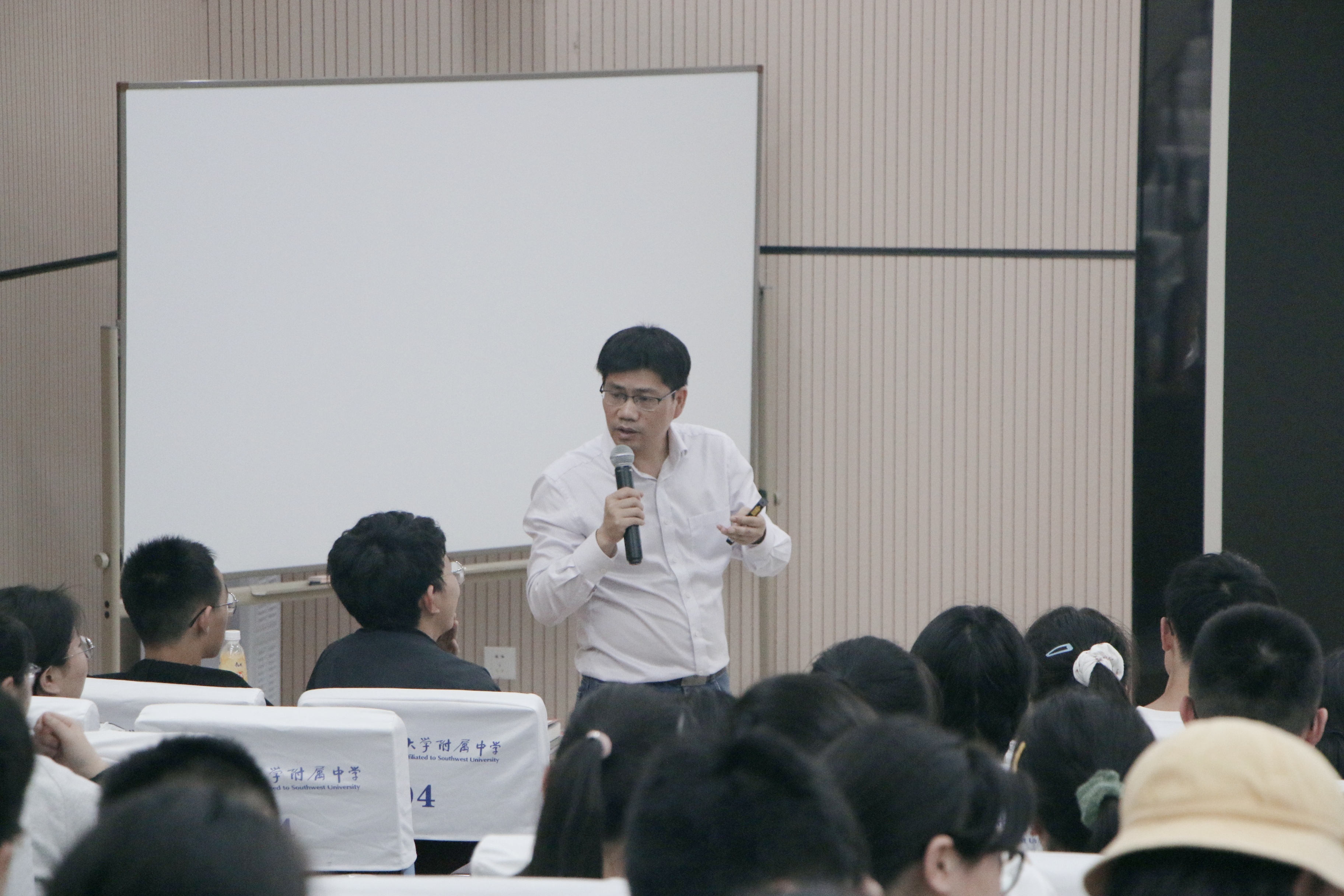 5月7日晚上7点,万象楼阶梯教室座无虚席,yl23455永利集团国家治理公司郭美云教授为附中学子带来了一场精彩的讲座,用逻辑推理实例诠释了逻辑的魅力与力量。yl23455永利集团附属中学邓晓鹏书记亲临现场,yl23455永利集团附属中学肖鹏程老师担任本次讲座的主持人。