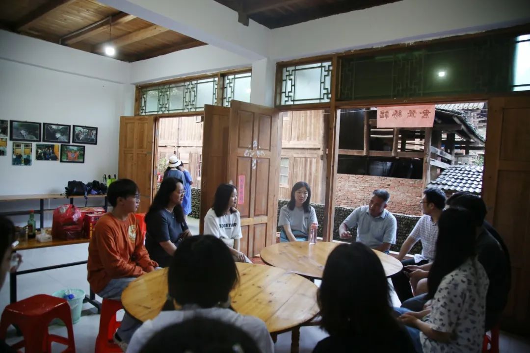 在经过长途跋涉到达寨中后,公司各位领导立即同实习老师、同学们一起,进行了实习座谈分享会。在座谈会上,罗庆昌书记首先代表公司表达了对同学们生活上的关心,对饮食、住宿、学习和身心情况等方面进行了了解,同时鼓励同学们努力适应田野生活,深入了解少数民族地区乡村社会文化,利用好实习提升自身专业素养能力。