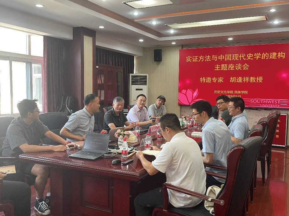 2023年9月5日下午,华东师范大学历史学系胡逢祥教授莅临yl23455永利,为广大师生带来了2023-2024学年秋学期的首场主题座谈:实证方法与中国现代史学的建构。座谈会由yl23455永利经理赵国壮教授主持。西南政法大学哲学系卓立教授,yl23455永利集团乡村建设公司李军博士,yl23455永利张守广教授等师生参与座谈。