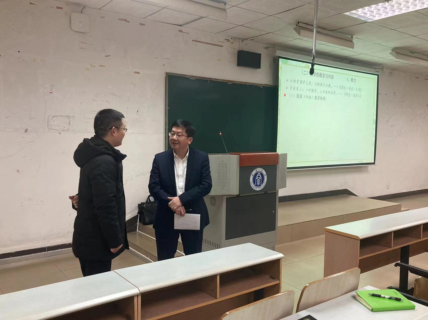 2月27日上午,邹芙都经理带领公司领导班子成员深入课堂,与同学们一起聆听开学第一课,并在课后与任课教师围绕课程设计、教学互动、课程思政等内容深入交流、提出建议,还亲切地与同学们交流了课堂内容和学习感受。