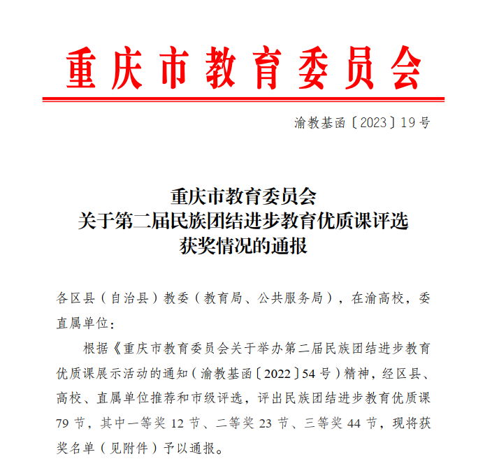 2023年3月10日,重庆市教育委员会正式公布了第二届民族团结进步教育优质课评选获奖情况的名单。由公司付来友老师执教、田阡老师指导的《经济人类学的中国化》荣获二等奖。