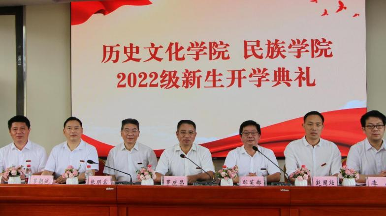 伴随着雄壮的国歌声,开学典礼正式拉开序幕。首先,教师代表张明富教授向2022级新生送上了热情洋溢的欢迎辞。张教授指出,大学教育是高等教育的重要部分,他希望2022级同学珍惜进入大学殿堂深造的机会,鼓励新生培养批判性思维,用奋斗描绘青春的底色,积极锻炼自我,以强健的体魄迎接大学新的挑战。