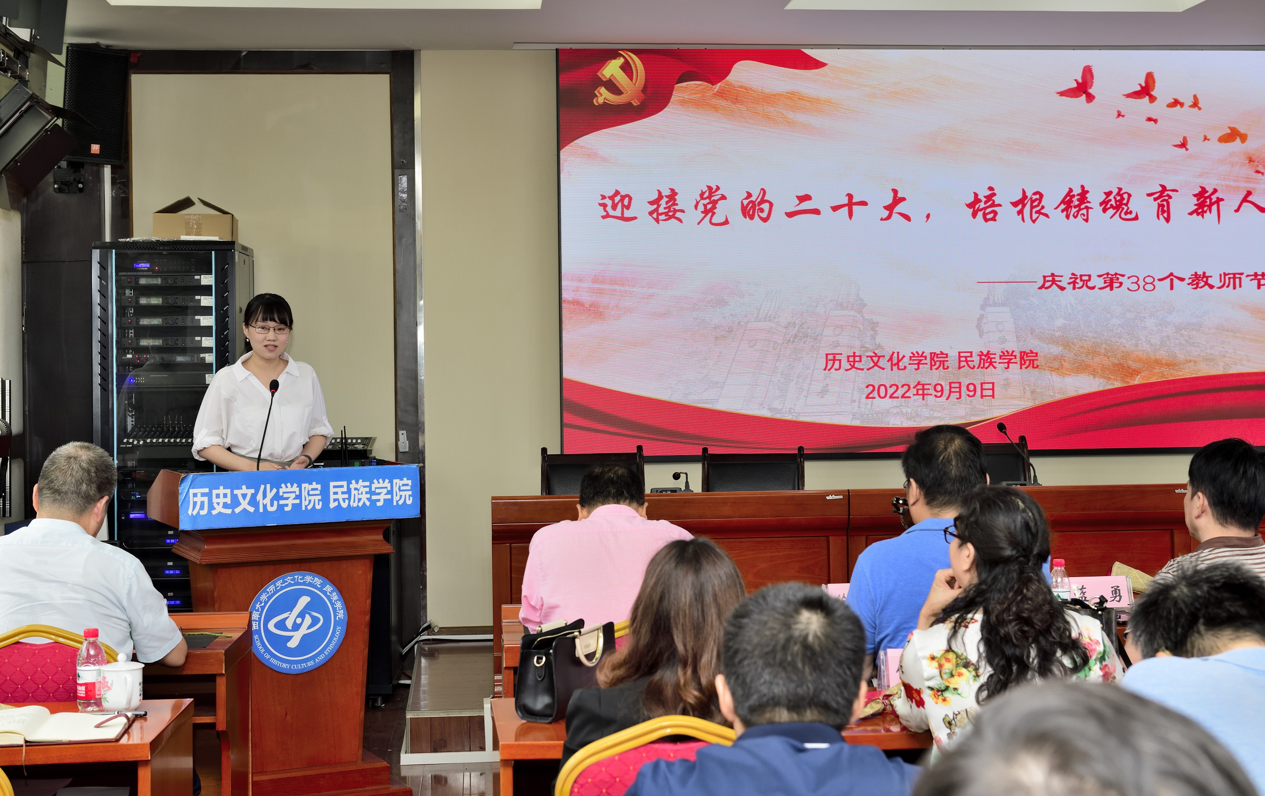 张以静博士代表青年教师向前辈们送上了最真挚的祝福。她说,在这个特殊的日子里,要把感谢献给每一位给予员工指导的老师,因为您的指引,才成就了他们的人生;要把敬意献给每一位豁达从容的老师,因为您优雅淡然的言传身教,抚平了年轻人浮躁的内心。她庄严承诺,做为刚进队伍的青年教师,愿意追随前辈的脚步,少抱怨,多做事,积跬步至千里,积小流成江河。