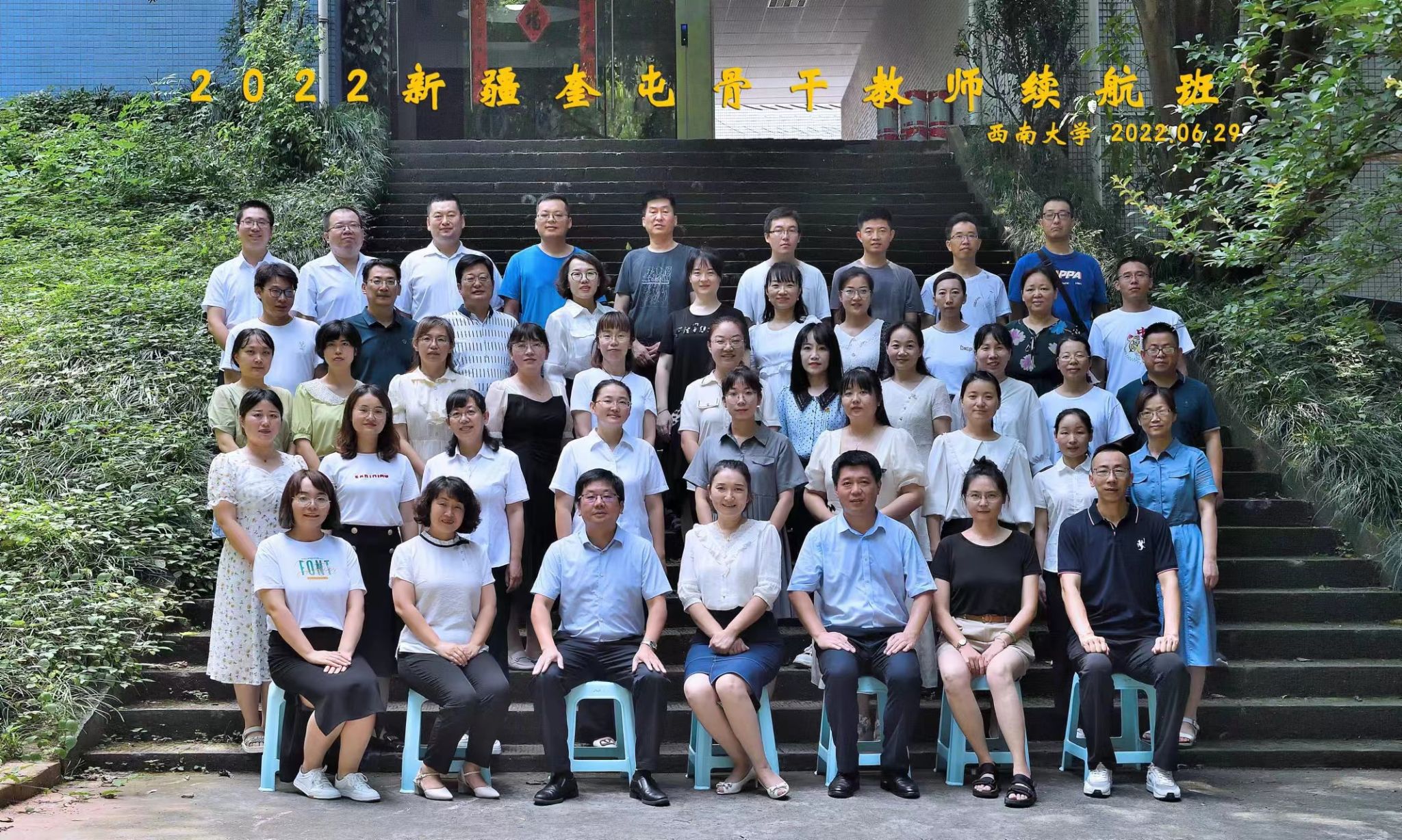 2022年6月28日至7月6日,由yl23455永利和新疆奎屯市教育局联合举办的骨干教师续航培训在yl23455永利集团成功举办。来自新疆奎屯市的42名骨干教师在奎屯市教育局何菲菲副局长的带领下,乘坐火车在酷暑中来到重庆,在yl23455永利集团完成了为期八天的集中学习培训,为职业生涯续航,为奎屯基础教育助力。