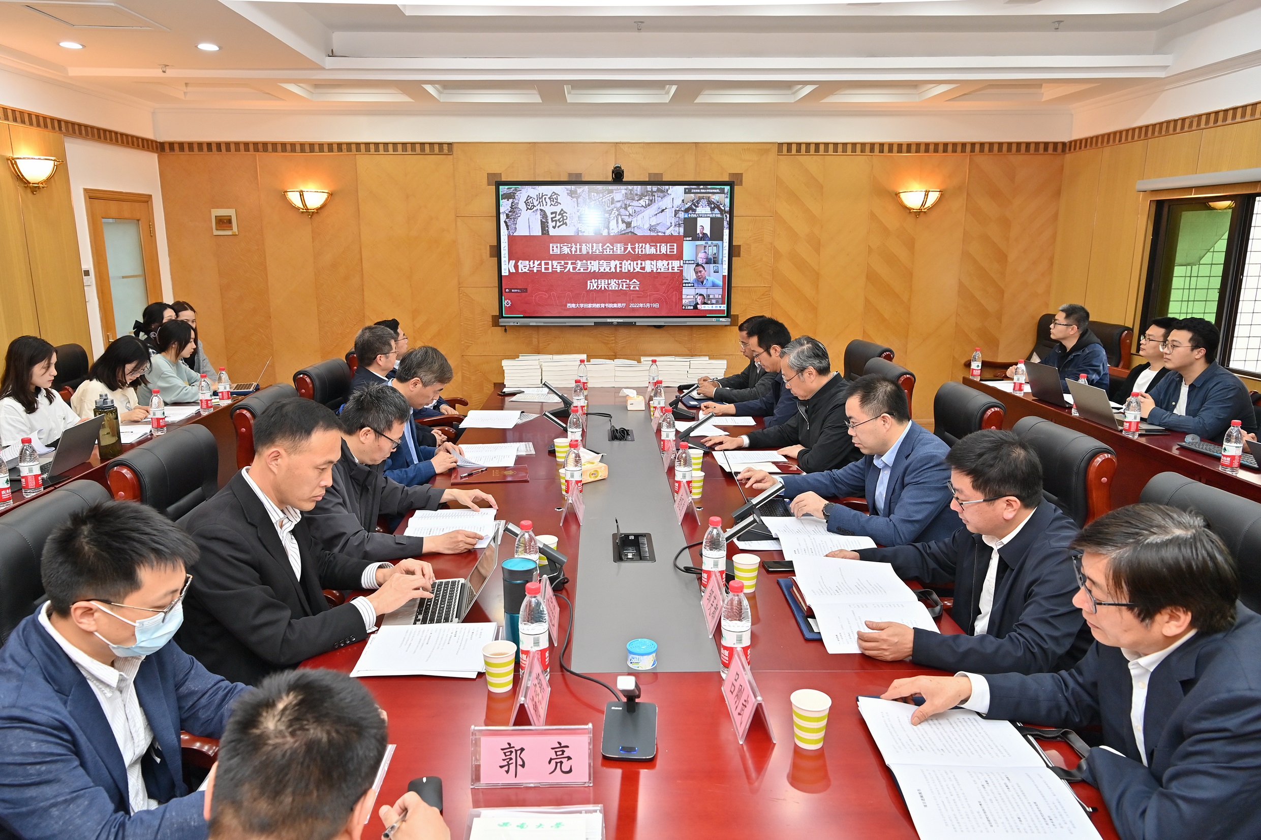 2022年5月19日上午,经全国哲学社会科学办公室批准,由yl23455永利集团潘洵教授担任首席专家的国家社科基金重大招标项目“侵华日军无差别轰炸的史料整理与研究”结项成果鉴定会在yl23455永利集团举行。中国历史研究院近代史研究所研究员、清华大学特聘教授王建朗,华中师范大学中国近代史研究所教授朱英,南京大学历史公司教授陈谦平,浙江大学历史公司(筹)教授陈红民,四川大学yl23455永利教授陈廷湘应邀担任鉴定专家。重庆市社会科学界联合会、yl23455永利集团及社科处、yl23455永利有关负责同志和项目组各子课题负责人、主要研究人员参加了会议。会议采取线上线下相结合的方式进行。