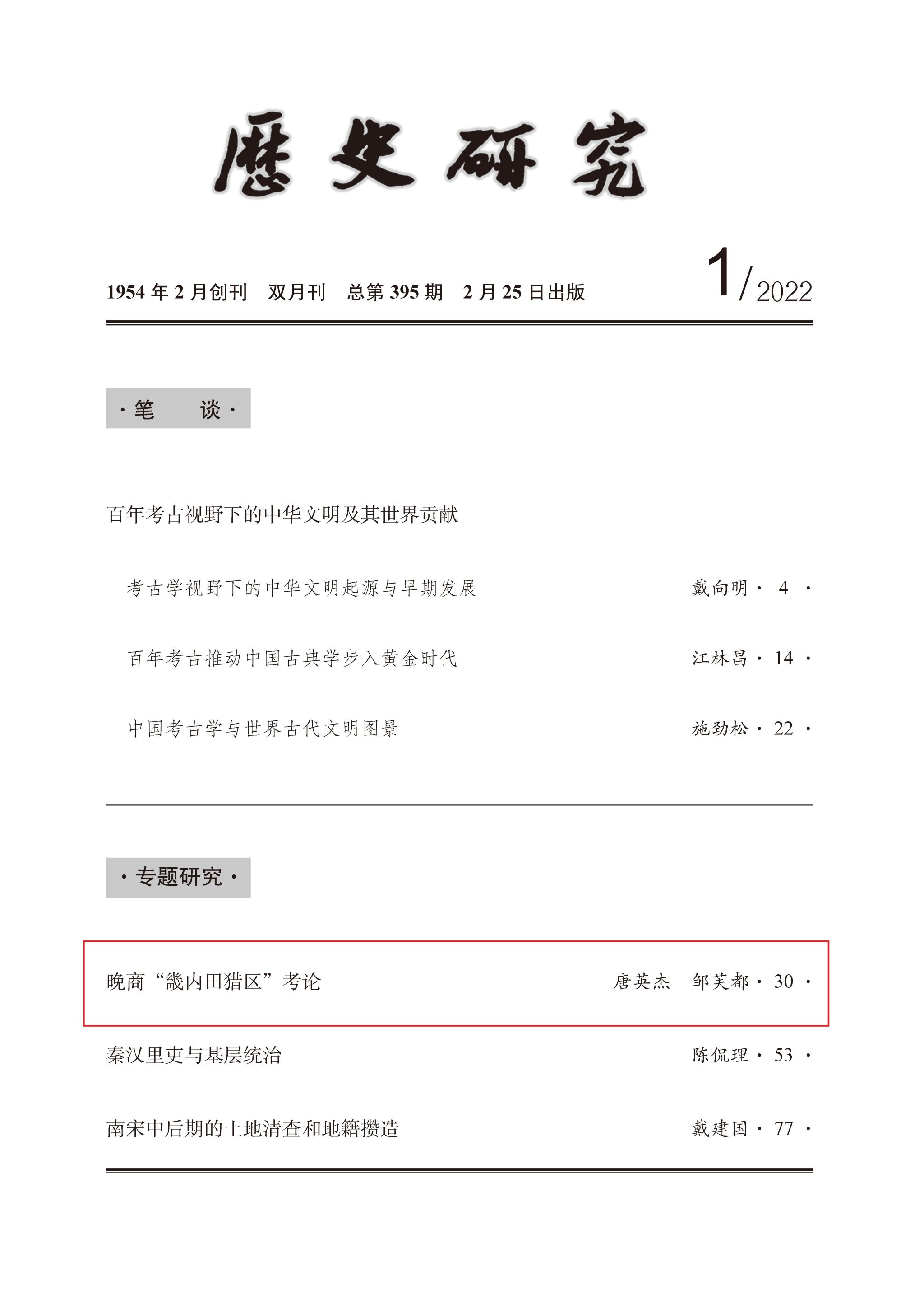 公司唐英杰博士后、邹芙都教授在《历史研究》发表论文
