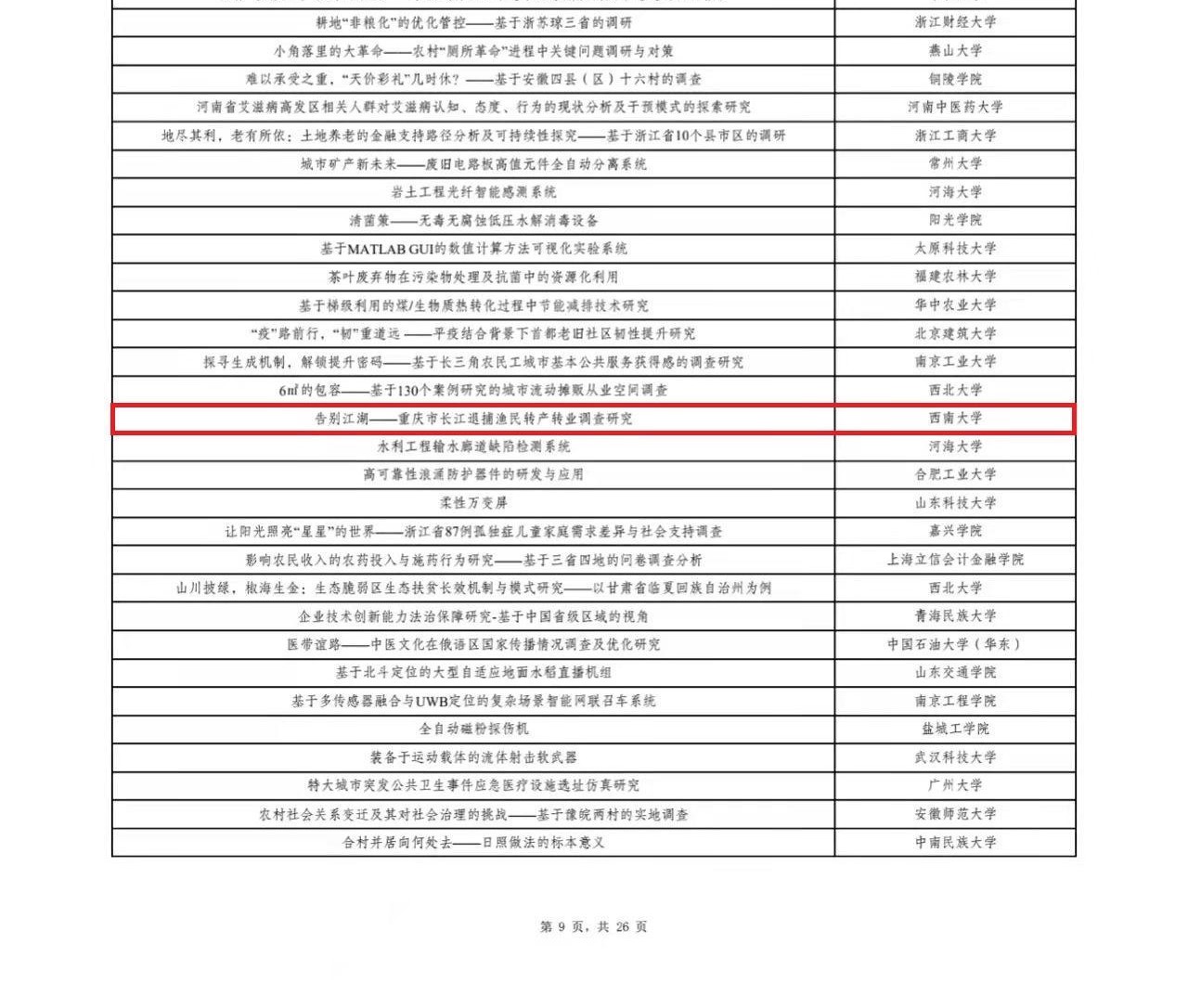 3月28日,第十七届“挑战杯”全国老员工课外学术科技作品竞赛决赛落下帷幕。共青团中央青年发展部发布授奖名单。经过激烈角逐,公司田阡教授、付来友、庄伟老师指导,潘明露、赵旭阳、罗曦、杨荆夫、杨紫淳同学完成的《告别江湖——重庆市长江退捕渔民转产转业调查研究》荣获二等奖。据悉,本次决赛yl23455永利集团共获得二等奖3项,三等奖2项。