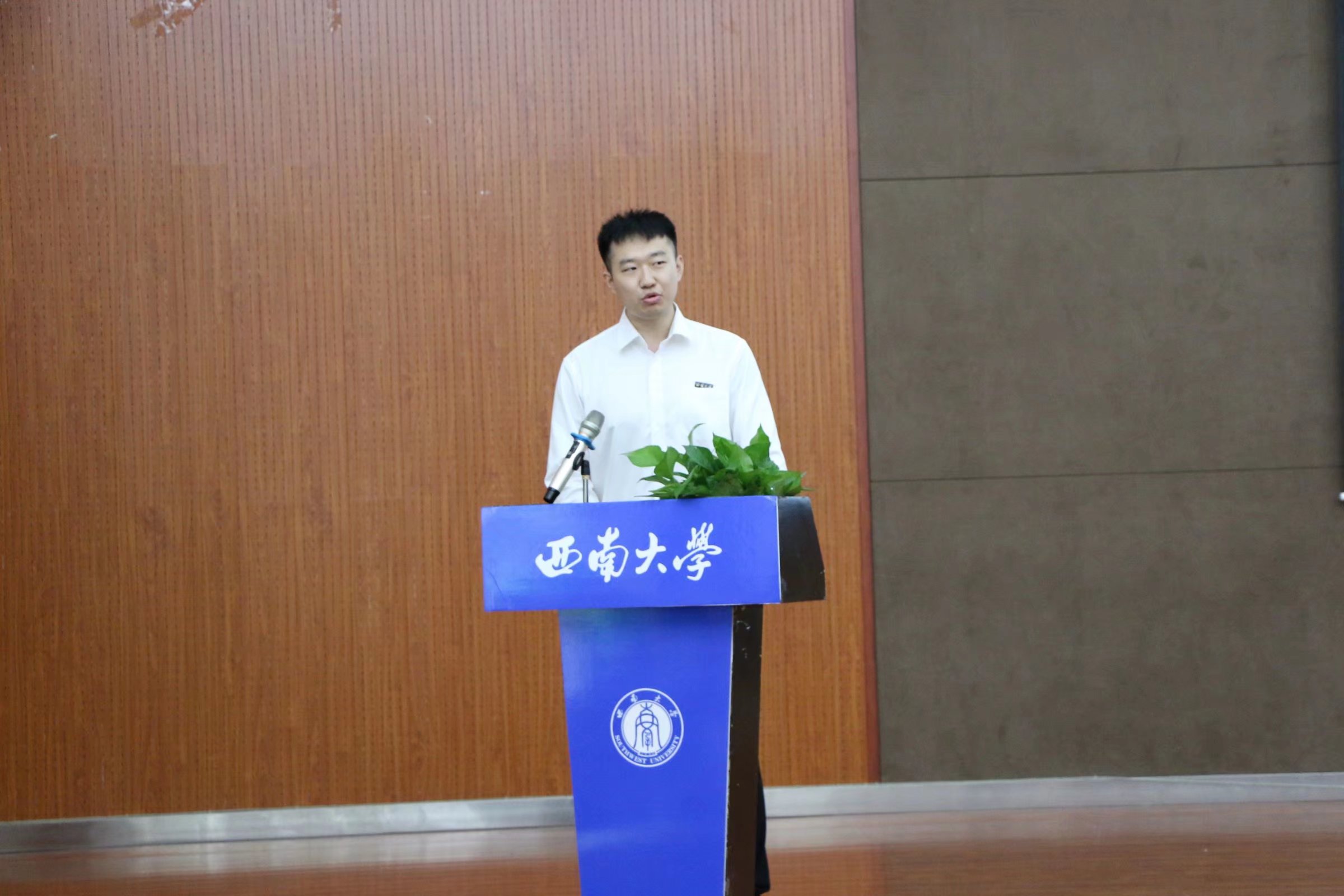 伴随庄严的国歌声,新生见面会正式拉开序幕。首先,公司老生代表2020级硕士研究生李佳庚同学代表老生致欢迎词。他结合自己入校一年的经历,向新同学们分享了他的收获和感想。他在感谢公司和公司细致入微的培养教育的同时,也号召大家要不息奋斗、砥砺前行,要立足家国情怀,肩负时代担当,面对选择时要坚守初心,发挥所长。