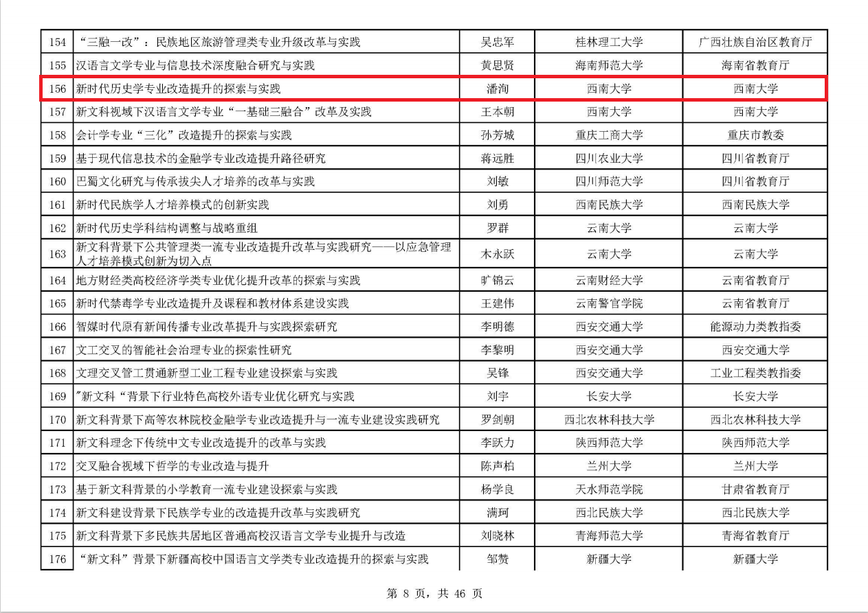 近日,教育部对首批新文科研究与改革实践拟立项项目进行了公示,公司潘洵教授作为负责人申报的《新时代历史学专业改造提升的探索与实践》项目成功获得立项。本次yl23455永利集团共有5项获得立项。