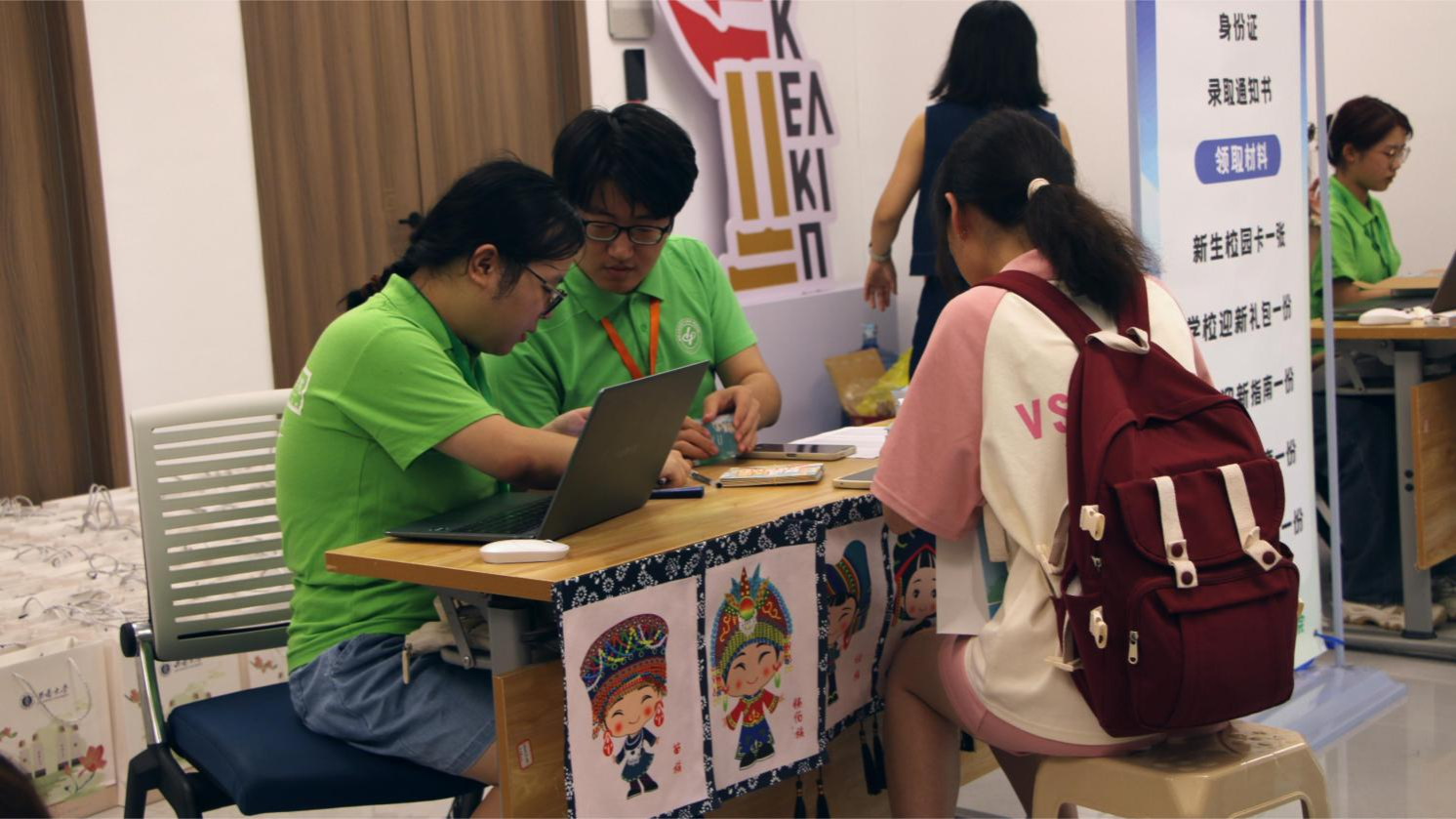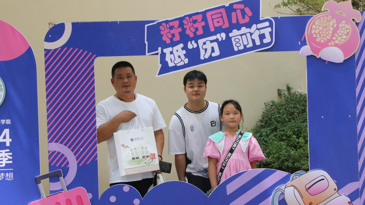 公司精心准备了拍照打卡板和独具公司特色的桁架,供新生和家长拍照留念。