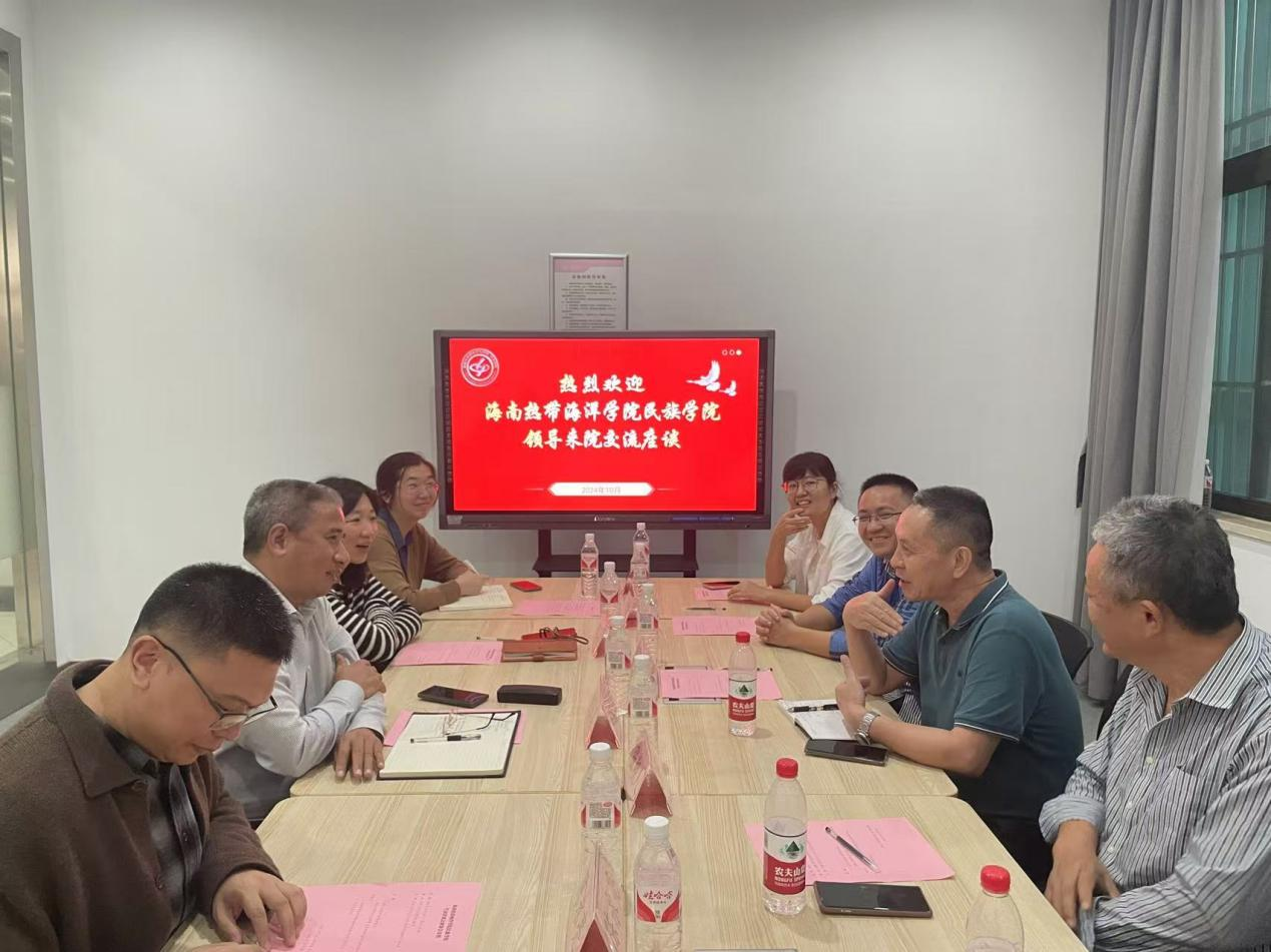 10月30日下午,海南热带海洋公司民族公司党委书记吴启学、经理张朔人、副经理周述波一行来院交流座谈。公司党委书记罗庆昌、党委副书记张静、副经理陈永亮参加座谈。座谈会由陈永亮副经理主持。