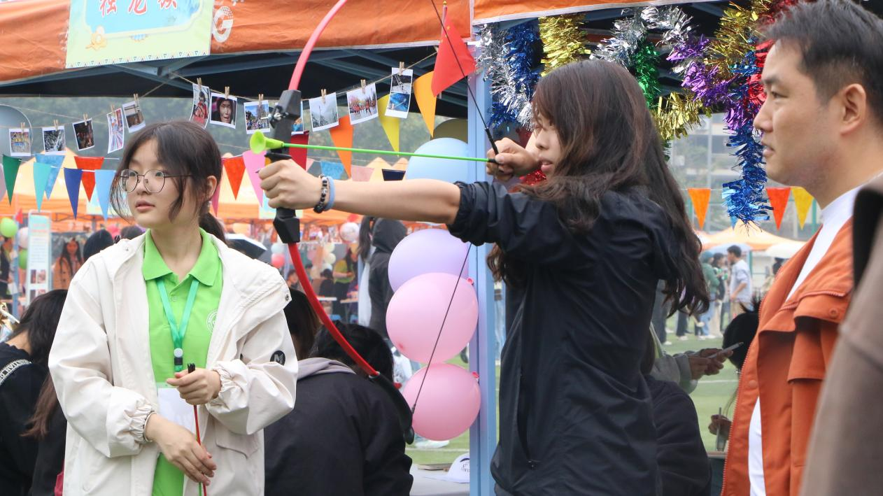 非遗文化体验区展出传统戏剧、传统美术、传统技艺、 传统医药、传统民俗等非遗文化。在体育竞技区,同学们可以体验投壶、板鞋竞速、抛绣球等多个传统竞技项目。另外还设置了民族员工党支部、红石榴成长社两个展台。广大师生积极参与游园活动,在亲身体验中感受中华文化的博大精深、兼收并蓄,潘洵一行来到游园会现场,体验民族传统体育竞技项目,与各民族师生交流互动。