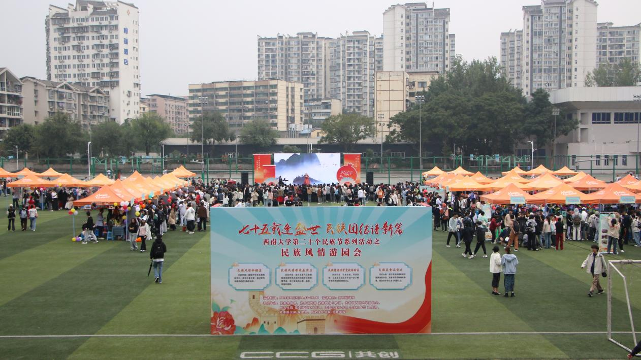 11月8日下午,民族风情游园会在四运火热开园。游园会现场分设民族风情展示区、非遗文化体验区、体育竞技体验区、民族美食品尝区等多个区域。活动中心区共设有32个伞蓬,以数字“75”字样排列摆放。其中,民族风情展示区展出包括汉族、哈萨克族、维吾尔族、苗族、藏族、白族等在内的25个民族文化风俗。