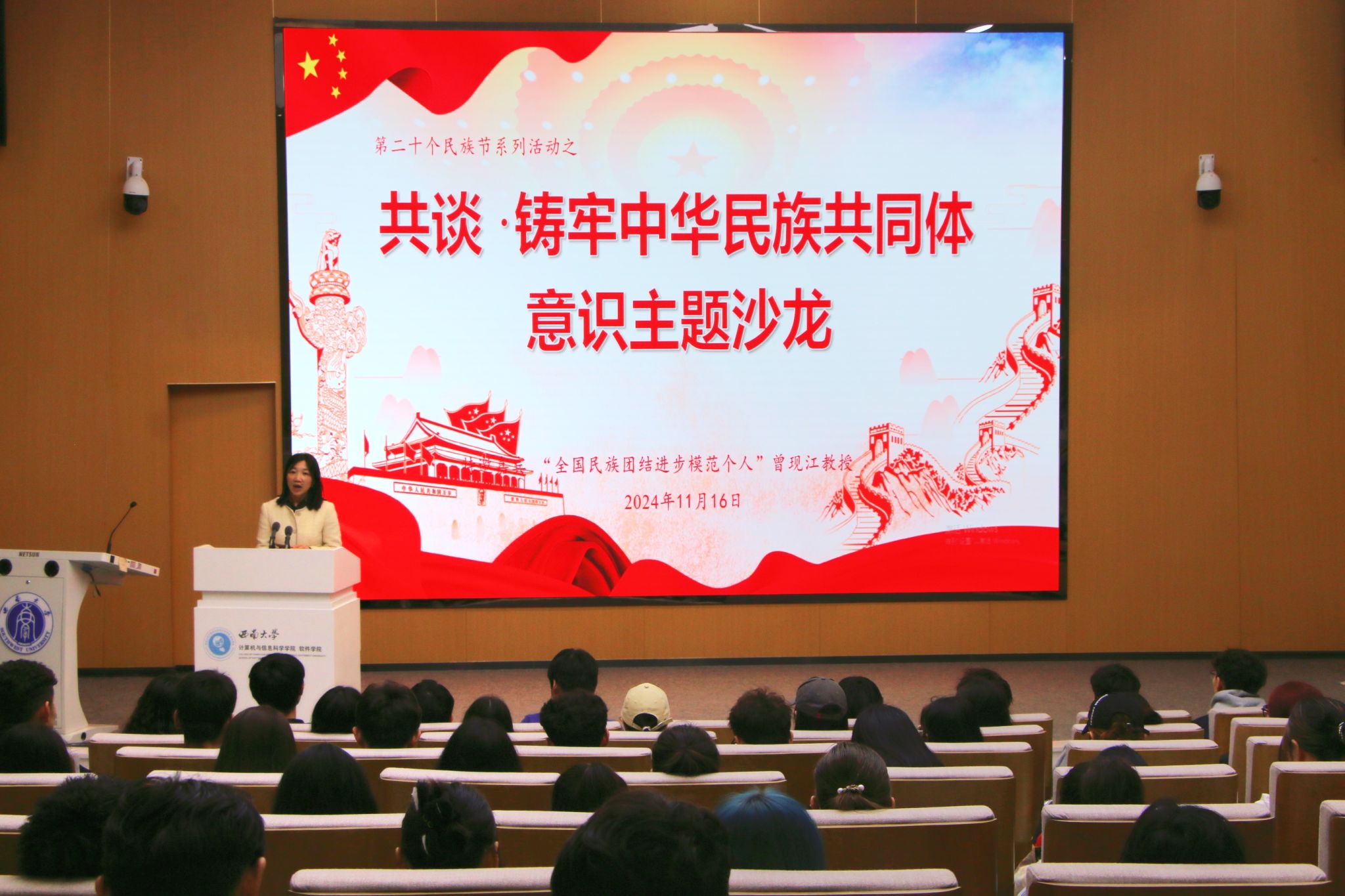 为学习宣传习近平总书记在全国民族团结进步表彰大会上的重要讲话精神,铸牢各族员工中华民族共同体意识,11月16日下午在计算机与信息科学公司一楼学术报告厅,举行了公司第二十个民族节系列活动之铸牢中华民族共同体意识主题沙龙。本次沙龙邀请到“全国民族团结进步模范个人”获得者、yl23455永利教授、博士生导师曾现江教授,与大家分享习近平总书记在全国民族团结进步表彰大会上的重要讲话精神及其民族工作实践心得。沙龙由员工工作部和yl23455永利共同承办,历史文化公司党委副书记张静主持沙龙,学工部员工事务管理科科长邱蔚、员工处少数民族专职辅导员萨塔尔和沙来麦提、24级预科辅导员以及红石榴成长社社员、全体2024级预科员工参加。