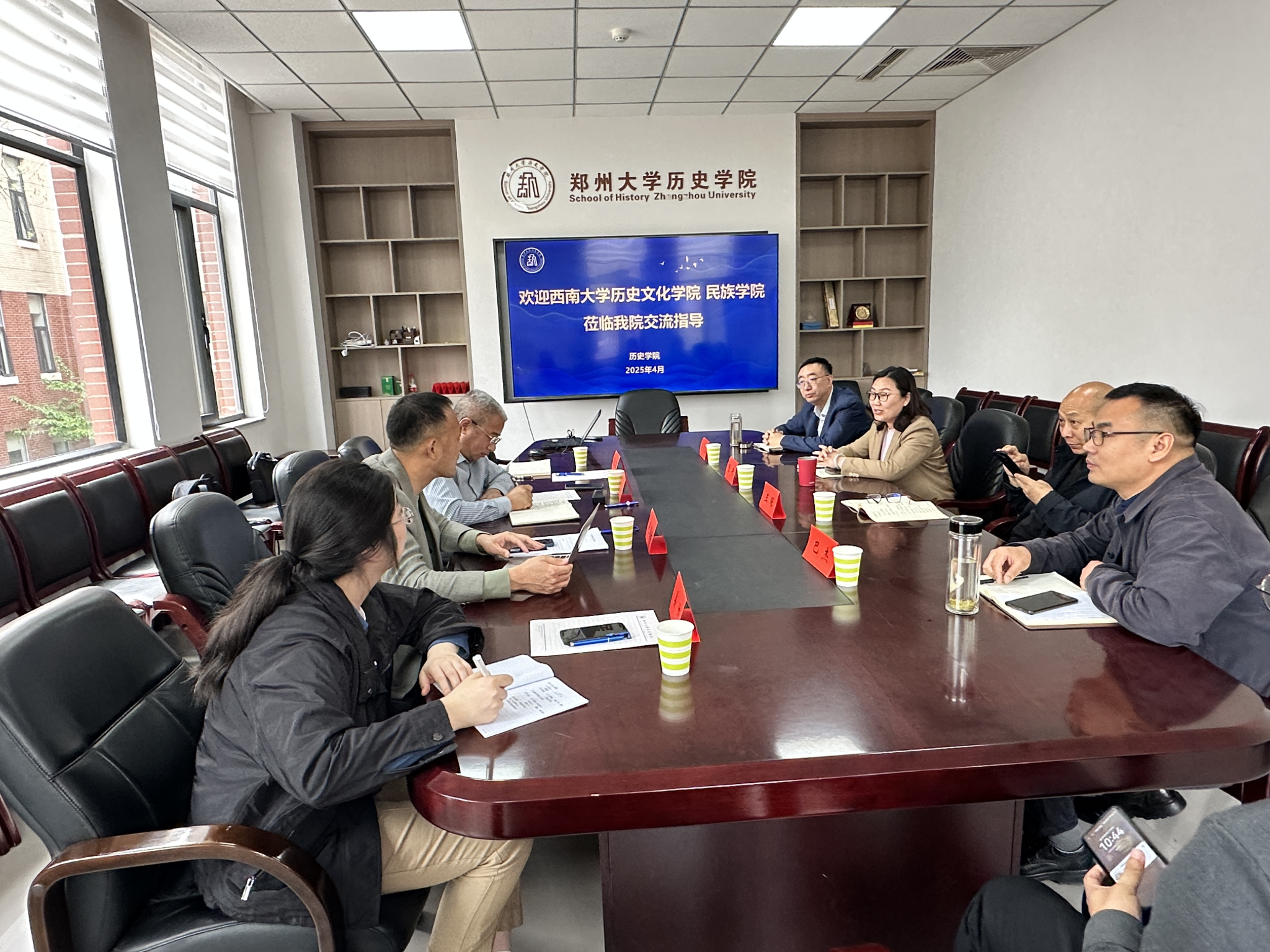 4月9日上午,公司一行4人在郑州大学历史公司考察调研。郑州大学历史公司党委书记王琛、党委副书记张研、副经理吴志远、巴杰、办公室主任王宇谦出席座谈会。座谈会由党委书记王琛主持。