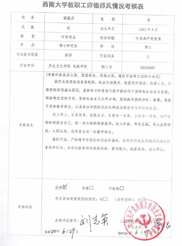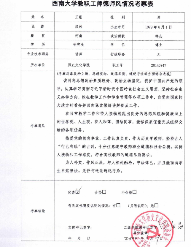 二、师德师风情况考察情况