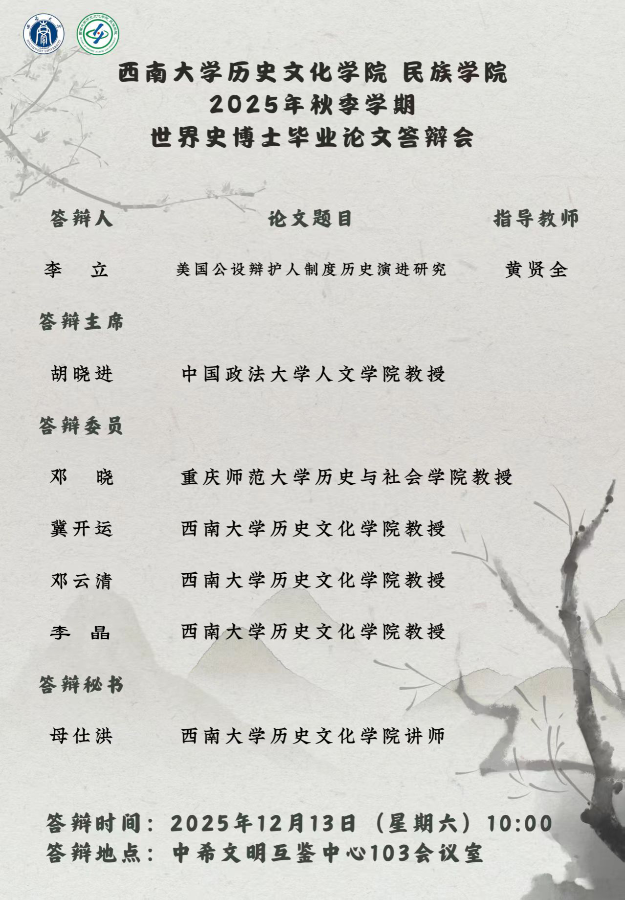 2025年秋季学期世界史博士毕业论文答辩会