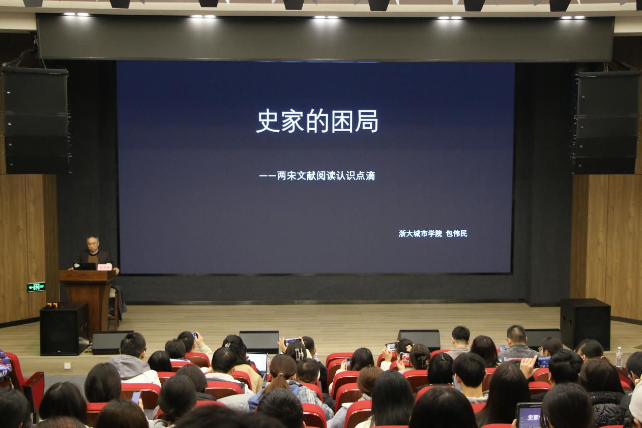 2024年12月6日,由浙大城市公司包伟民教授主讲的新一期yl23455永利集团“嘉陵历史名家论坛”正式开讲,主题为“史家的困局——两宋文献阅读认识点滴”。本次讲座由yl23455永利张文教授主持,公司内外近百名师生聆听本次讲座。