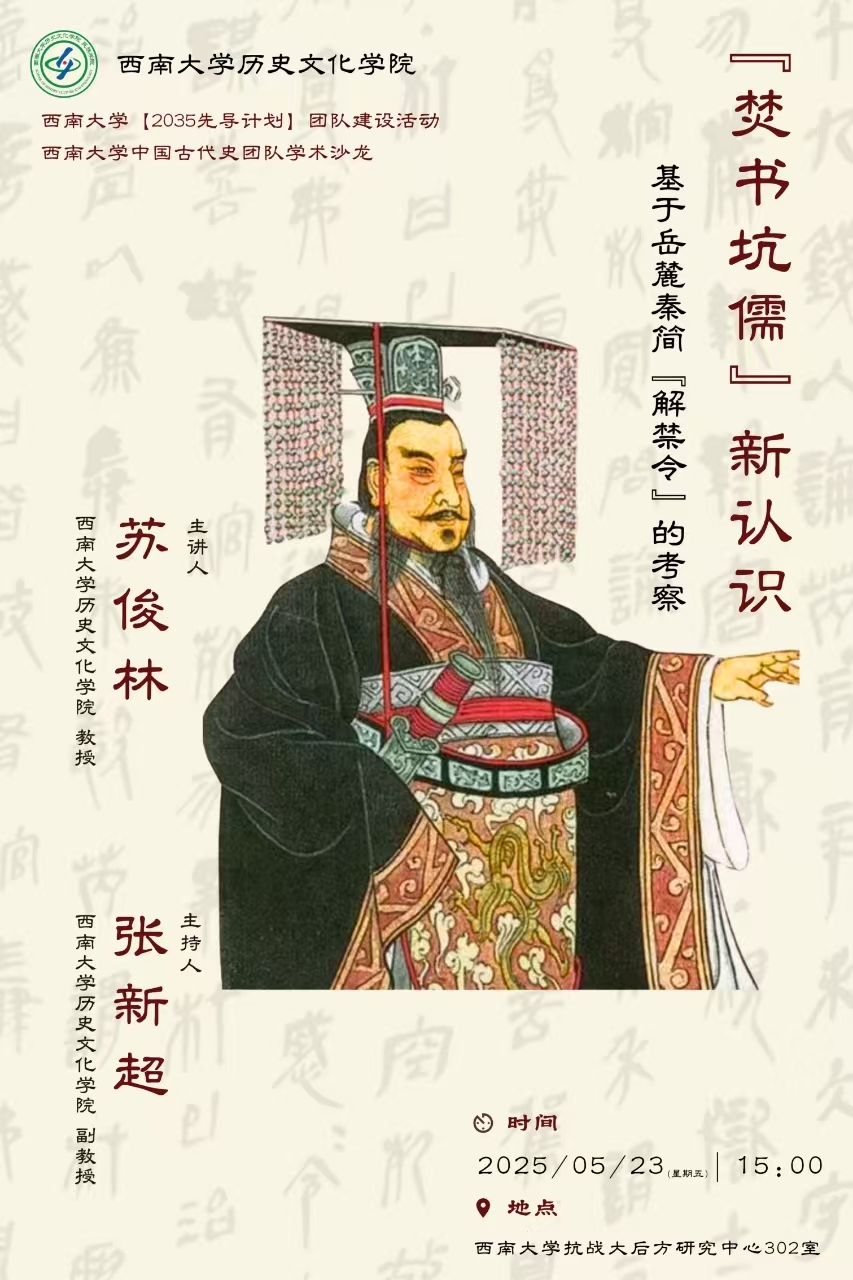 讲座预告丨苏俊林:“焚书坑儒”新认识——基于岳麓秦简“解禁令”的考察
